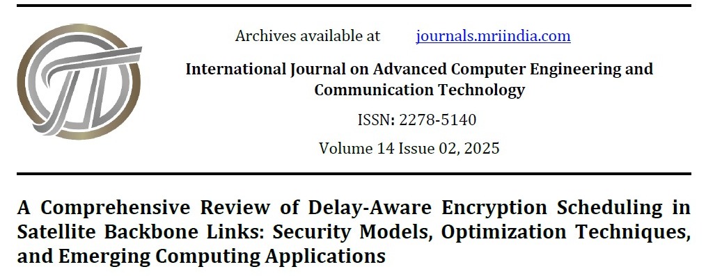 Garcia, P. R., Novak, J., & Hassan, O. (2025). A Comprehensive Review of Delay-Aware Encryption Scheduling in Satellite Backbone Links: Security Models, Optimization Techniques, and Emerging Computing Applications. International Journal on Advanced Computer Engineering and Communication Technology, 14(2), 281–290. Retrieved from https://journals.mriindia.com/index.php/ijacect/article/view/2171