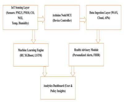 Smart Air Quality Forecasting and Health Advisory using Machine Learning and IOT