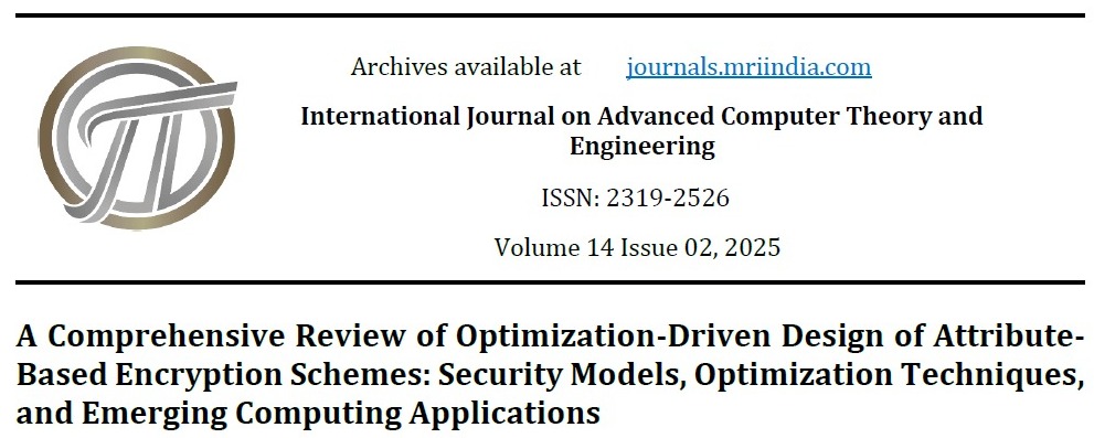 Thompson, E. L., Schneider, K., & Petrov, A. (2025). A Comprehensive Review of Optimization-Driven Design of Attribute-Based Encryption Schemes: Security Models, Optimization Techniques, and Emerging Computing Applications. International Journal on Advanced Computer Theory and Engineering, 14(2), 184–192. Retrieved from https://journals.mriindia.com/index.php/ijacte/article/view/2122