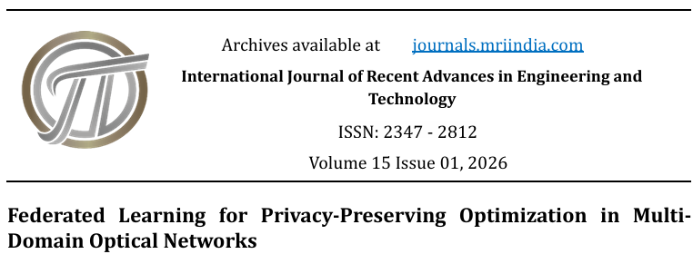 Kumar, V., & Dalal, S. (2026). Federated Learning for Privacy-Preserving Optimization in Multi-Domain Optical Networks. International Journal of Recent Advances in Engineering and Technology, 15(1), 132–142. Retrieved from https://journals.mriindia.com/index.php/ijraet/article/view/2398