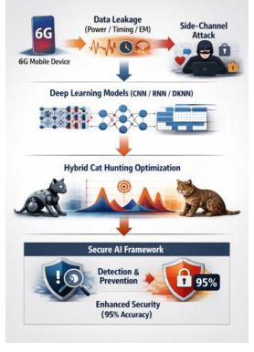 A Survey of Methods and Architectures for Secure AI for 6G Mobile Devices: Deep Kronecker Neural Network Optimized with Hybrid Cat Hunting Optimization to Combat Side-Channel Attacks